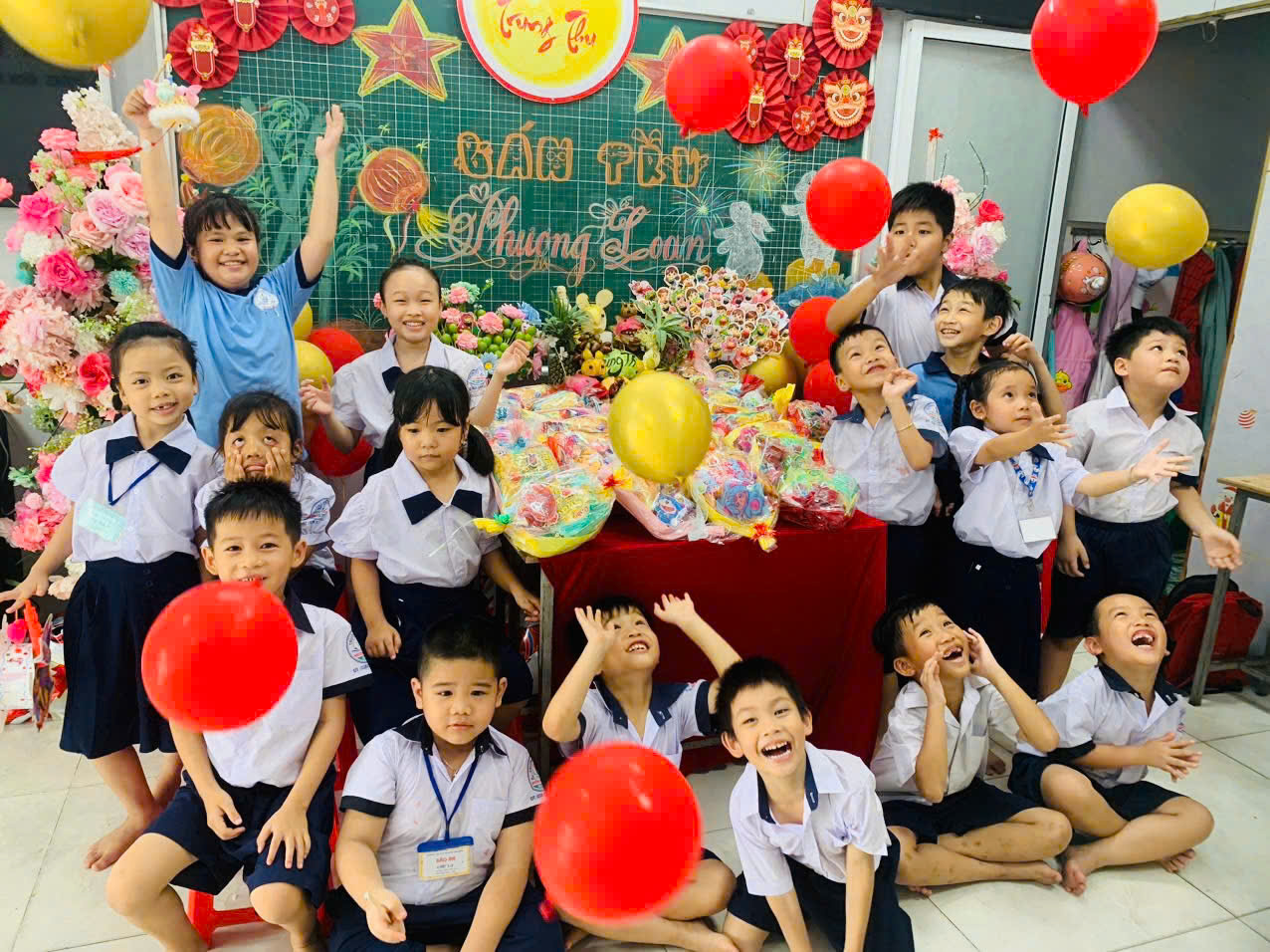 Ngay từ sáng sớm, sân trường tại các cơ sở Bán trú Phương Loan đã được trang hoàng rực rỡ với đèn lồng, mâm ngũ quả, mâm cỗ trăng rằm và khu vực trò chơi dân gian. Các thầy cô cùng học sinh đều háo hức trong những bộ trang phục đầy sắc màu để cùng nhau đón ngày hội lớn nhất trong năm của thiếu nhi.